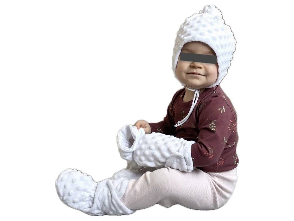 Materiál: premium minky (100% PES) + bavlněný hladký úplet (95% bavlna, 5% elastan)